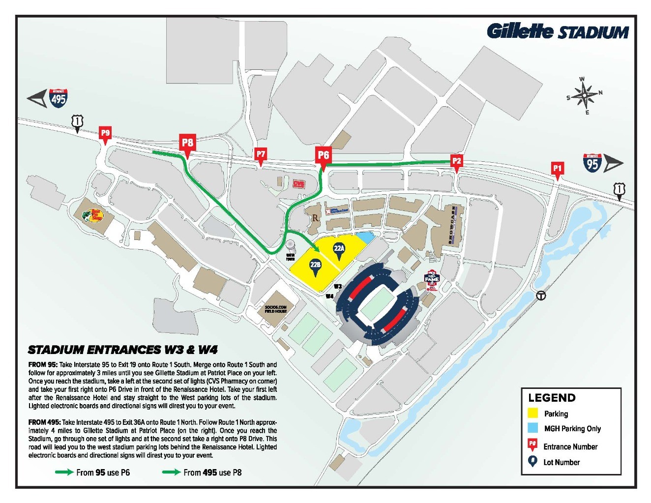 View the map below for directions to Lot 22 via stadium entrances W3 & W4.
